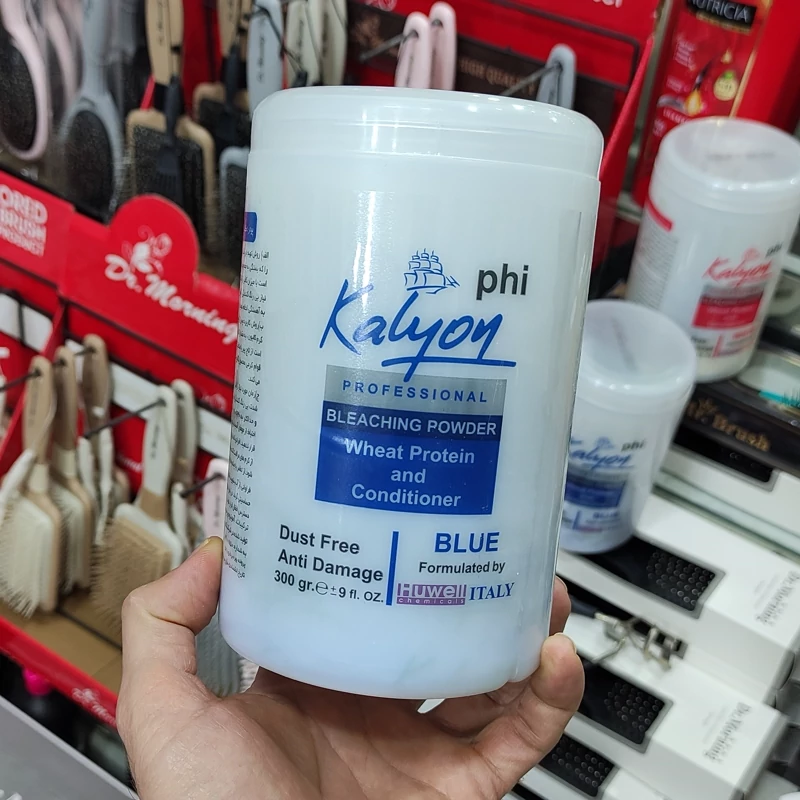 پودر دکلره پروتئینه و نرم کننده کالیون کاملا بدون غبار با رنگدانه های آبی بدون سوزش و پوسیدگی مو- دو رنگ سفید و آبی