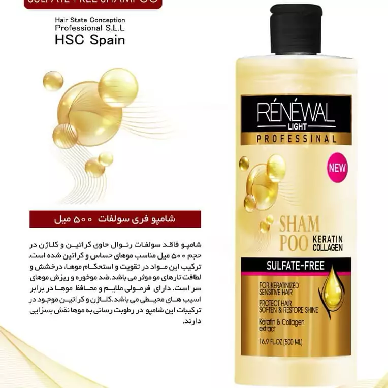 شامپو کراتین بدون سولفات رنوال اسپانیا 500 میل