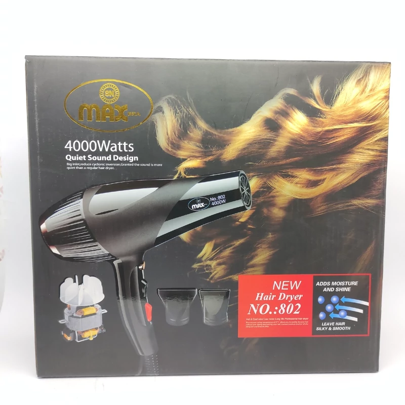سشوار مکس مدل 802 -4000 وات- حفظ رطوبت 12 درصدی مو-دمای مراقبتی 57 درجه ثابت برای تار نشدن مو- موتور سنگین(موتور 17 )