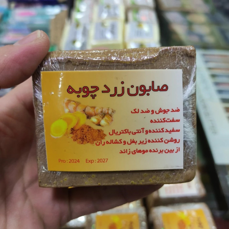 صابون زردچوبه مواد گیاهی ضد جوش و آکنه ضد لک و کک آنتی باکتریال سفت کننده سفید کننده روشن کننده زیر بغل و کشاله ران تولید 2024 انقضا 2027