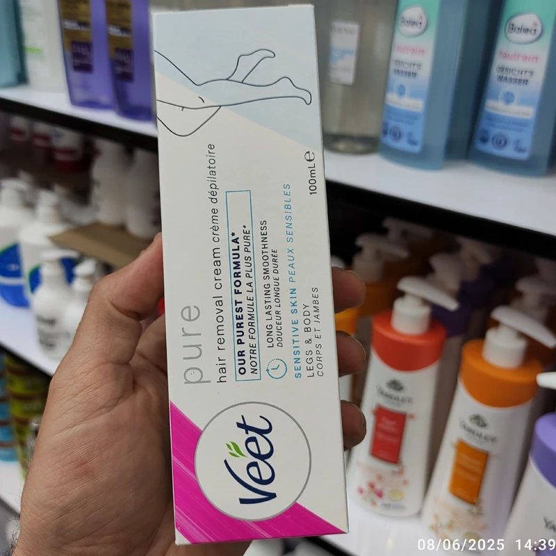 کرم موبر Veet Pure برای پوستهای حساس است. این کرم موبر برای استفاده روی پاها و بدن مناسب است. فرمولاسیون آن حاوی مواد تسکیندهندهای مانند آلوئهورا و ویتامین E است که برای پوستهای حساس مناسب است. این محصول موها را از نزدیک ریشه از بین میبرد و نرمی طولانیمدت را فراهم میکند.