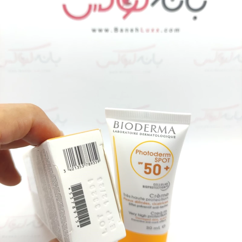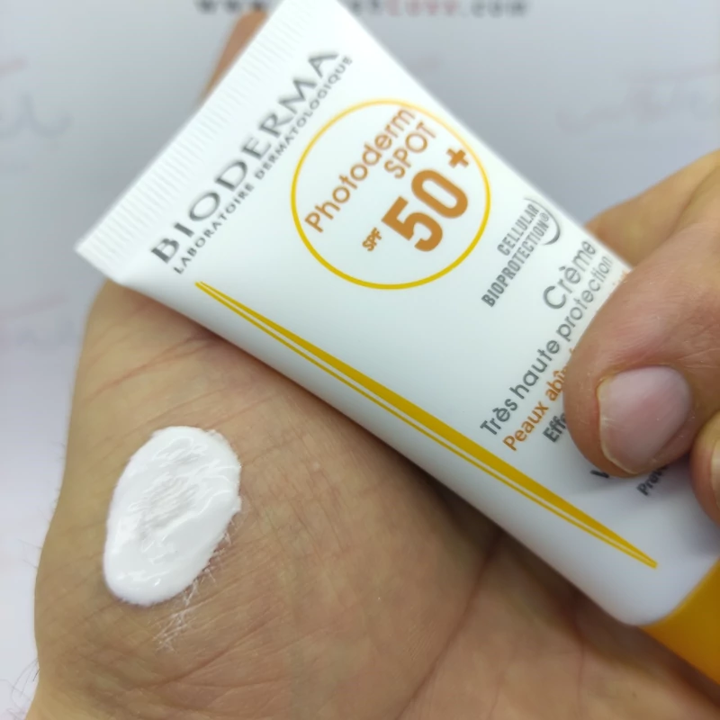 ضد آفتاب بی رنگ بیودرما SPF 50 مدل اسپات-آب رسانی قوی و ضد پیری پوست- تسکین دهنده پوست