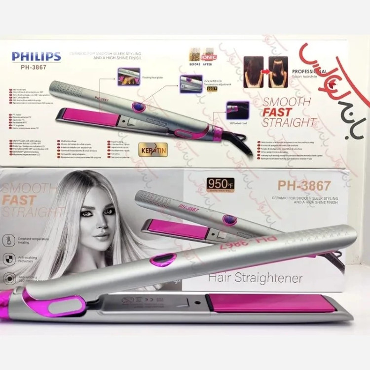 اتو مو کراتین فیلیپس مدل PH-3867 لبه باریک 950 درجه فارنهایت