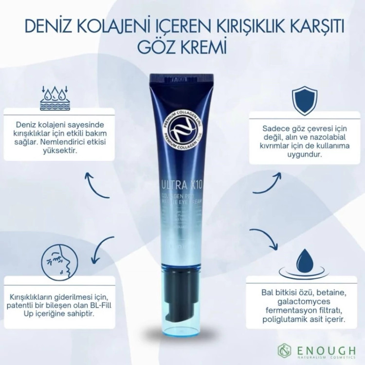 💠کرم دور چشم آلترا 10X مدل کلاژن پرو مارین ENOUGH