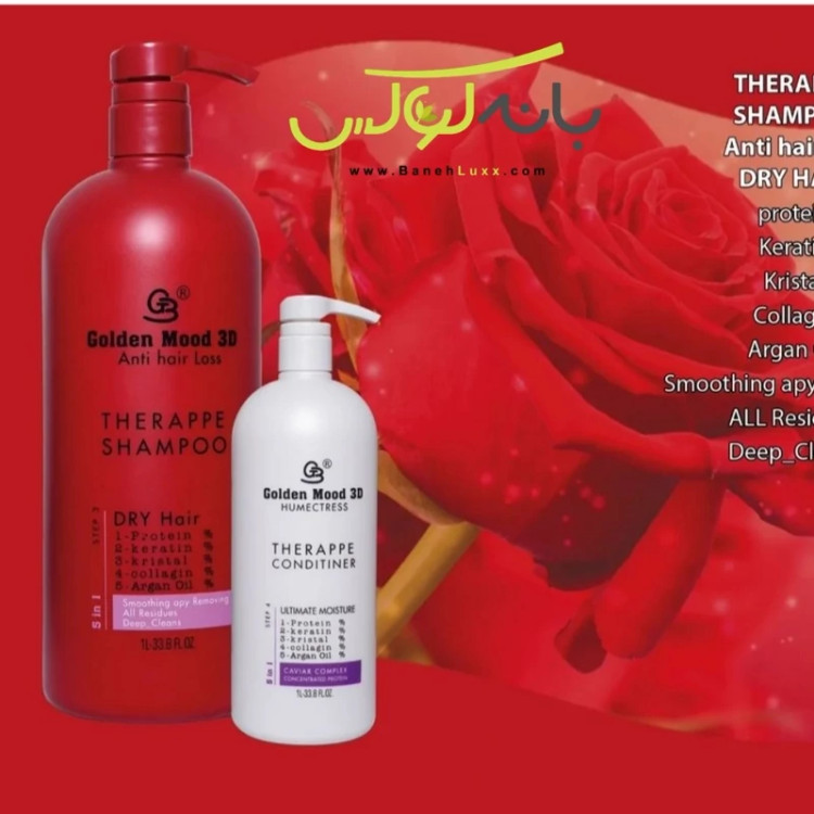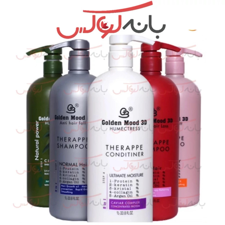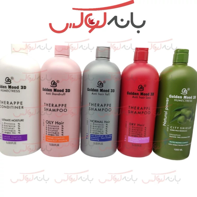 شامپو پنج کاره گلدن مود فرانسه حاوی آرگان و کلاژن و کراتین و پروتئین کاملا بدون امونیاک و سولفات و پارابن با مواد گیاهی