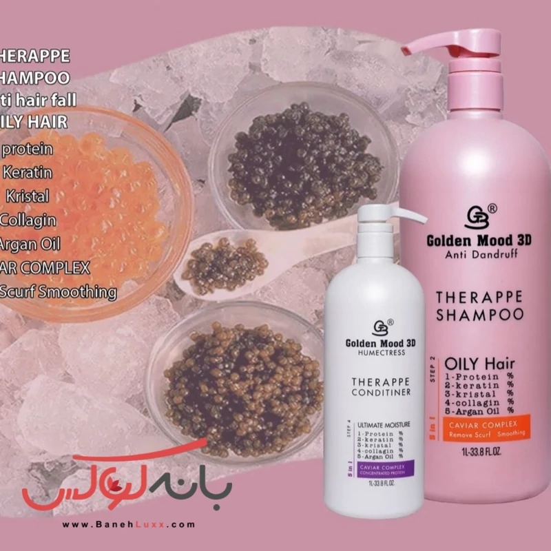شامپو پنج کاره گلدن مود فرانسه حاوی آرگان و کلاژن و کراتین و پروتئین کاملا بدون امونیاک و سولفات و پارابن با مواد گیاهی