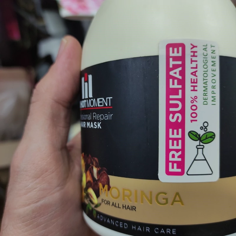 ماسم مو پلی هات مومنت بدون سولفات مورینگا امو- موهای وز و اسیب و دیده حاوی هسته آرگان و عصاره سیب و آلوئه ورا و گلیسیرین