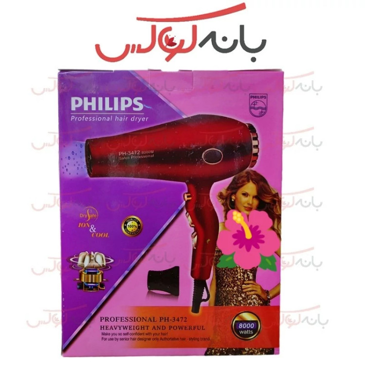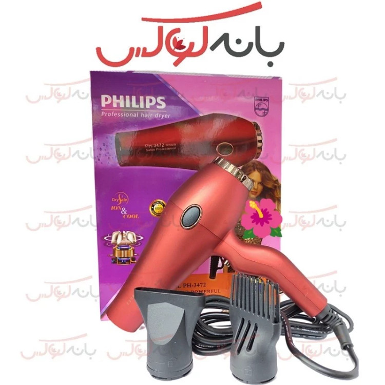 سشوار فیلیپس اصل مدل 3472 سری 8000 وات- سوپر سایلنت-سیم پیچی حرفه ای موتور-بسیار پر قدرت-یونیزه- بازار مشترک اروپا
