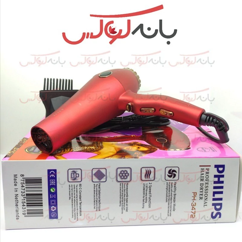سشوار فیلیپس اصل مدل 3472 سری 8000 وات- سوپر سایلنت-سیم پیچی حرفه ای موتور-بسیار پر قدرت-یونیزه- بازار مشترک اروپا