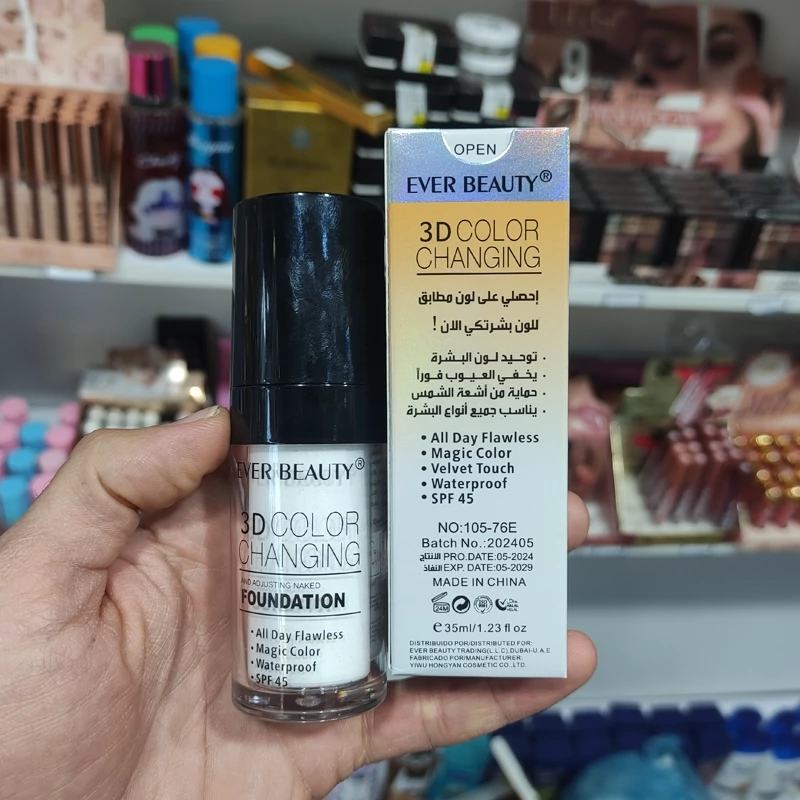 کرمپودر EVER BEAUTY 3D دارای رنگدانه های هوشمند است که با ماساژ دادن رنگ اولیه آن که سفید است به رنگ پوست تغیر شکل پیدا میکند