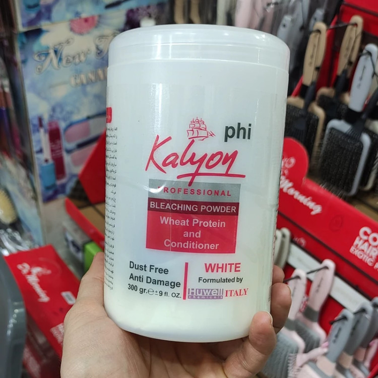 پودر دکلره پروتئینه و نرم کننده کالیون کاملا بدون غبار با رنگدانه های آبی بدون سوزش و پوسیدگی مو- دو رنگ سفید و آبی