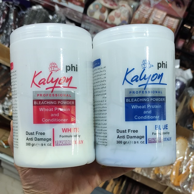 پودر دکلره پروتئینه و نرم کننده کالیون کاملا بدون غبار با رنگدانه های آبی بدون سوزش و پوسیدگی مو- دو رنگ سفید و آبی