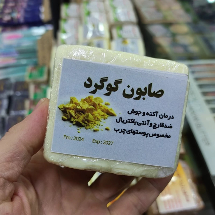 صابون گوگرد سنتی کاملا طبیعی ضد جوش و اکنه آنتی باکتریال ضد قارچ مخصوص پوست های چرب تولید 2024 انقضا 2027