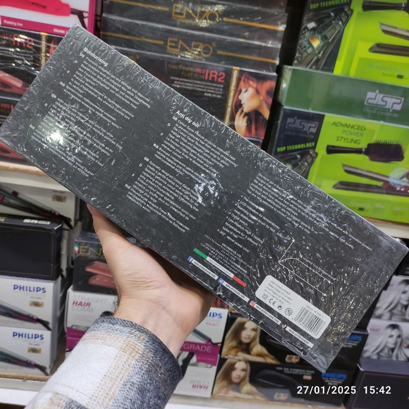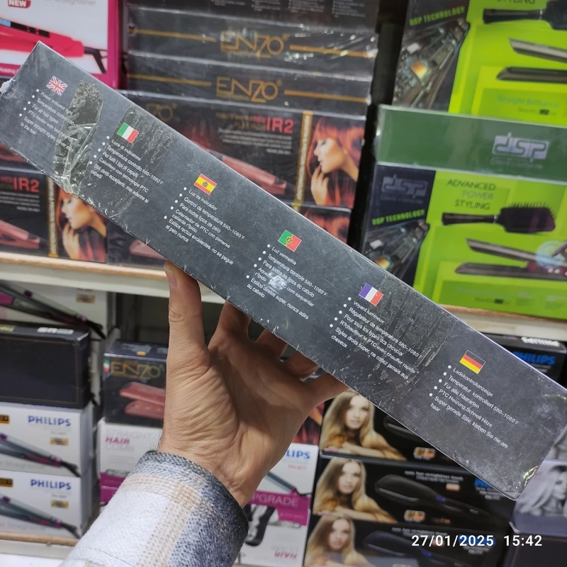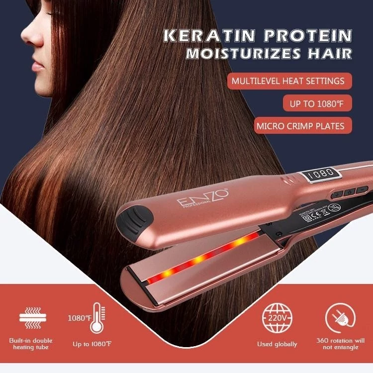 اتومو کراتینه انزو مدل EN-3851 یک اتومو حرفه ای و قدرتمند برند انزو می باشد. این اتو مو فوق حرفه ای دارای صفحات پهن و از جنس سرامیک بوده و برای صاف کردن ، کراتینه و ایجاد مدل موهای جدید مورد استفاده قرار می گیرد. بر روی صفحات این اتو مو ، حرارت به صورت یکنواخت پخش شده و مانع از تمرکز آن در یک نقطه و سوختن موها می شود. بیشینه دمای این اتومو 1080 درجه فارنهایت است که معادل 230 درجه سانتیگراد می شود.