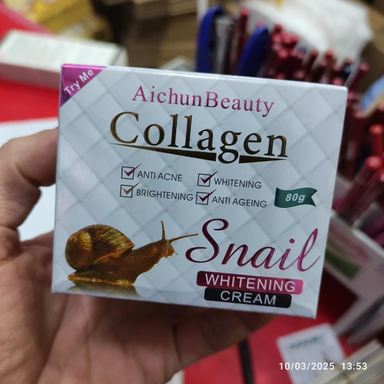 کرم جوانساز و سفیدکننده حلزون کلاژن 80 گرم-Collagen Collagen Snail Whitening Cream حاوی ترشحات بزاق حلزون ضد پیری پوست صورت جوان ساز صورت ضد جوش و آکنه سفید کننده پوست روشن کننده و درخشان کننده صورت شفاف کنندگی بی نظیر کلاژن سازی قوی آبرسانی خیلی عالی ترمیم بافت های پوستی پاکسازی عمقی پوست صورت انقضاء: 2027 حجم 80 گزم ساخت انگلستان معرفی کرم جوان ساز حلزون چهار کاره کلاژن اصل: گاهی به دلایلی چون استفاده از لوازم آرایش غیر استاندارد، رژیم غذایی نامناسب، آلودگی هوا و مواردی از این قبیل پوست دچار پیری و آسیب دیدگی می شود. راه حل غلبه بر این مشکلات استفاده از کرم های جوانسازی پوست است. توصیه ما به شما استفاده از کرم حلزون کلاژن چهار کاره است. کرم حلزون کلاژن یک پاکسازی کامل و عمقی پوست صورت است و در مراقبت از پوست صورت یکی از بهترین های محصولات مراقبتی است. کرم حلزون چهار کاره است. یعنی ضد پیری و جوانسازی است، سفید کننده و روشن کننده پوست صورت است. همچنین ضد جوش و آکنه است. در زیر با ویژگی های بیشتر این محصول آشنا خواهیم شد: کرم جوانسازی و ضد پیری حلزون ویژگی های کرم جوان ساز و سفید کننده collagen: در اینجا به مهمترین ویژگی کرم ضد پیری کلاژن حلزون می پردازیم. ترشحات بزاق حلزون شامل ترکیباتی چون آلانتوئین، آنتیبیوتیکهای طبیعی، ویتامین های A، C و E، اسید گلیکولیک، کلاژن، الاستین و پروتئین هایی است. که در سلامت، شادابی و سفتی پوست نقش موثری دارند و از آنها عموماً در محصولات مراقبتی و زیبایی پوست استفاده میشود که تاثیرشان بر پوست ثابت شده است. کرم حلزون از نظر بافت، بسیار سبک است و بر روی صورت سنگینی ایجاد نمی کند. کرم کلاژن در بافت های پوستی به صورت عمقی نفوذ کرده و به دلیل دارا بودن آلانتوئین، سلول های مرده پوست را حذف و بر بازسازی سلول های جدید اثر می گذارد. این امر موجب می شود پوست به نحو احسن جوان سازی گردد و صورت از پیری نجات پیدا کند. کرم کلاژن ساز کلاژن حلزون کرم جوانساز حلزون کلاژن سرشار از کلاژن است و کلاژن سازی صورت را به بهترین وجه ممکن انجام می دهد. کلاژن سبب می شود که آبرسانی پوست بالا رود و پوست دچار خشکی نگردد. کرم حلزون انگلستانی یک ضد جوش و آکنه بسیار قوی است و و به دلیل دارا بودن آنتی اکسیدان های قوی و طبیعی حلزون منبع مهمی برای کنترل چربی صورت است. این امر سبب می گردد صورت شما جوش نزند. همچنین اگر در صورت شما جوش و آکنه باشد سبب پاک سازی کامل آن می شود. کرم snail کلاژن به دلیل داشتن ماده هلیکس آسپرسا پوست را به شدت درخشان و روشن می کند و از تیرگی حفظ می کند. این کرم همچنین یک سفید کننده طبیعی بسیار موثر است که رنگدانه های پوست را به حالت نرمال بر می گرداند و در نتیجه پوست سفید می گردد. collagen snail cream کرم روشن کننده حلزون برای چه پوست های خوب است؟ هر کرم بسته به ترکیبات و مواد سازنده آن برای پوست های مخصوص به خود کاربرد دارد. کرم کلاژن ساز حلزون 80 گرمی به دلیل دارا بودن مواد طبیعی و ترکیبات فاقد مواد شیمیایی برای تمامی پوست ها اعم از پوست مختلط، پوست چرب، پوست خشک و پوست معمولی قابل استفاده است. اما collagen snail بیشتر برای کسانی که پوستی خشک و حساس دارند و یا این