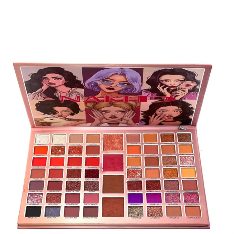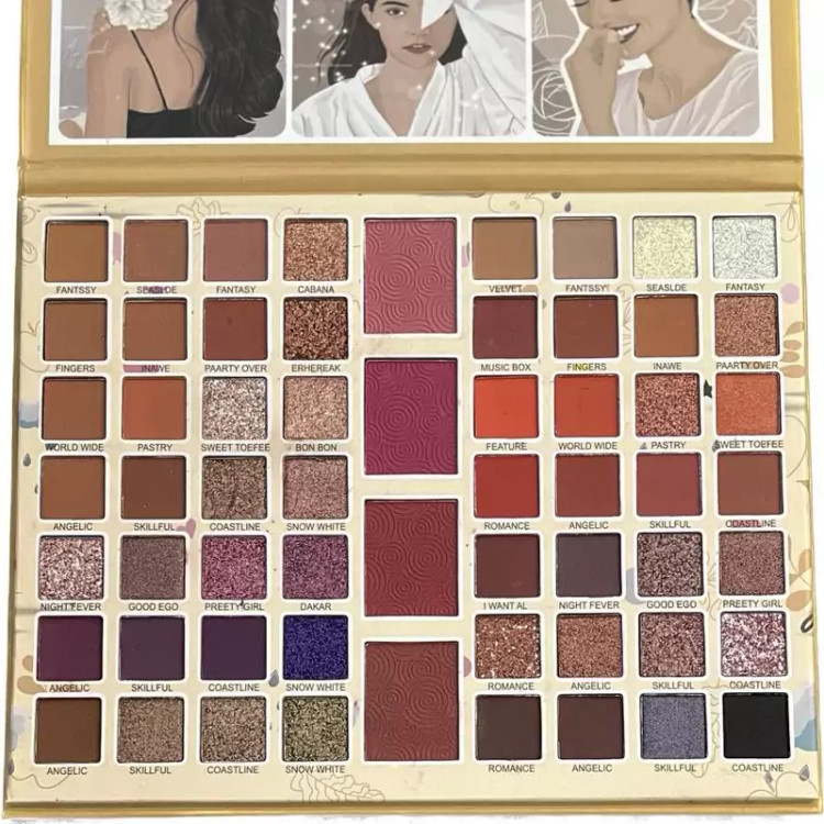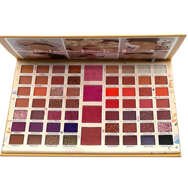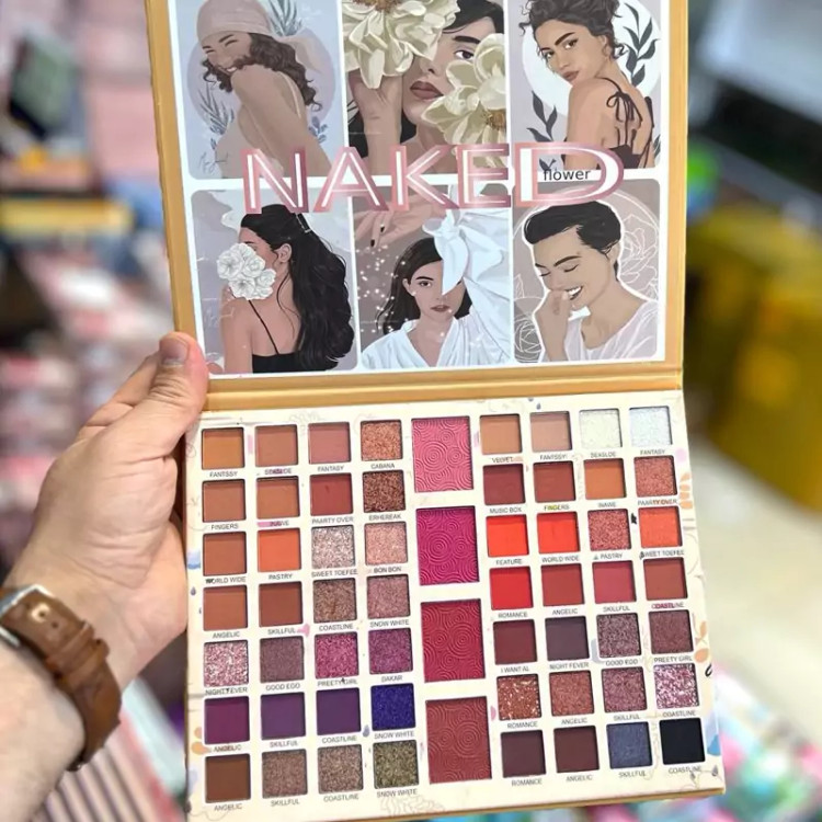 پالت سایه 60 رنگ ناکد همراه با رژگونه- ترکیب رنگ سالنی با رنگهای مات و مخملی و گلایتری با بافتی فاقد چربی با پیگمنت بالا