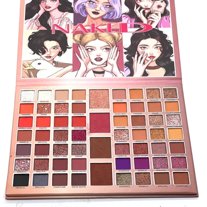 پالت سایه 60 رنگ ناکد همراه با رژگونه- ترکیب رنگ سالنی با رنگهای مات و مخملی و گلایتری با بافتی فاقد چربی با پیگمنت بالا