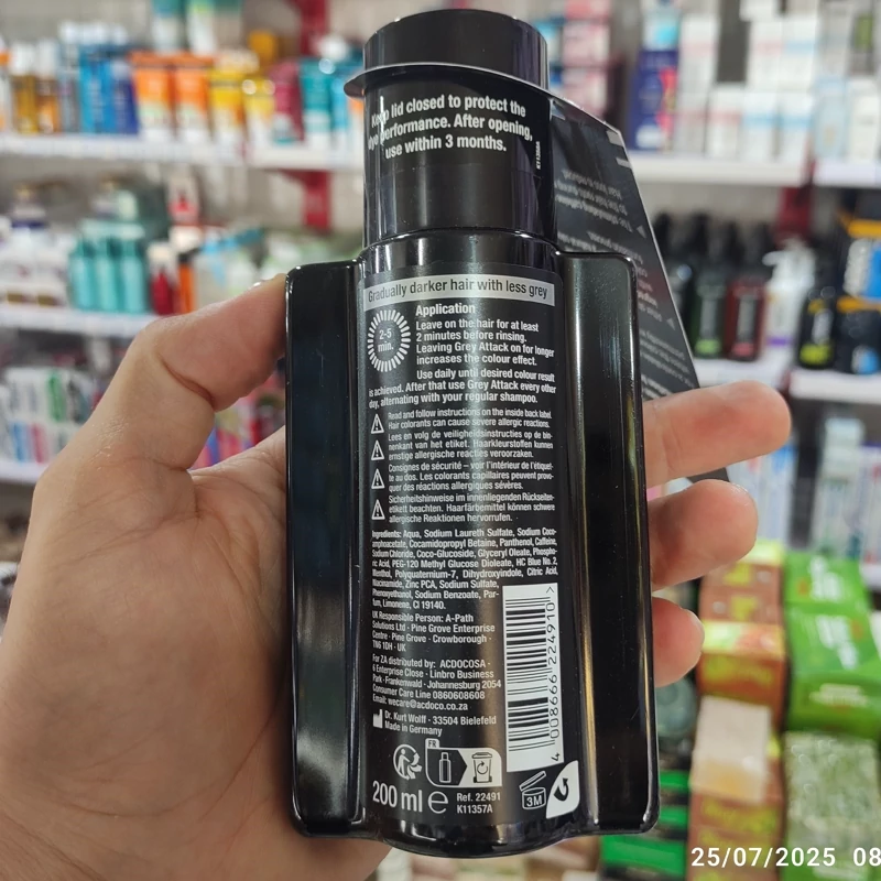 شامپو کافئین و رنگ آلپسین مدل Grey Attack آلمانی اصل این محصول هم شامپو ضد ریزش است هم شامپو رنگ مشکی طبیعی این شامپو برای کاهش تدریجی موهای خاکستری طراحی شده است و به موها ظاهری تیرهتر و قویتر میبخشد. حاوی کافئین است که به تحریک ریشههای مو و تقویت رشد مو کمک میکند. مناسب برای انواع رنگ مو، اما به ویژه برای موهای قهوهای روشن تا مشکی موثر است. نتیجهی استفادهی روزانه از این شامپو پس از 2 تا 4 هفته قابل مشاهده است و با شستشوی منظم از بین نمیرود. برای حفظ اثر، توصیه میشود روزانه استفاده شود. ضد ریزش: حاوی کافئین برای تحریک فولیکولهای مو و تقویت ریشه. مناسب برای موهای خاکستری: حفظ شادابی و درخشندگی طبیعی موهای خاکستری. حاوی مواد مغذی: تقویت موها و جلوگیری از خشکی و شکنندگی. حذف زردی مو: کاهش اثر زردی ناشی از عوامل محیطی بر روی موهای خاکستری و سفید. ساخت آلمان: محصولی از یکی از معتبرترین برندهای اروپایی در حوزه مراقبت از مو.