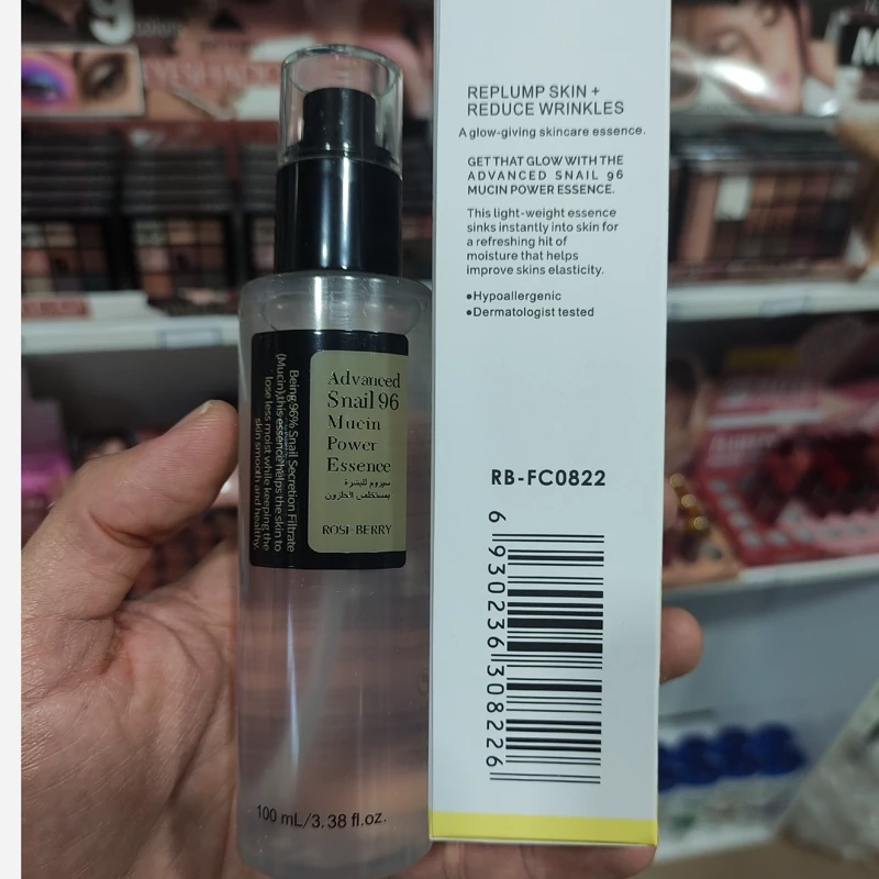 اسانس پیشرفته 96 درصد از موسین طبیعی و فیلتر شده حلزون به دست آمده و رطوبت روزانه پوست را تامین می کند و همچنین پوست را روشن و شاداب نگه می دارد.این سرم چندگانه حاوی ترکیبات مغذی فراوانی است که از پیری پوست هم جلوگیری می کند.ترکیبات اسنس حلزون به بهبود چین و چروک،جای زخم و لک های تیره کمک می کند و همچنین باعث افزایش خاصیت ارتجاعی پوست و در نتیجه جوان تر شدن پوست می شود.
