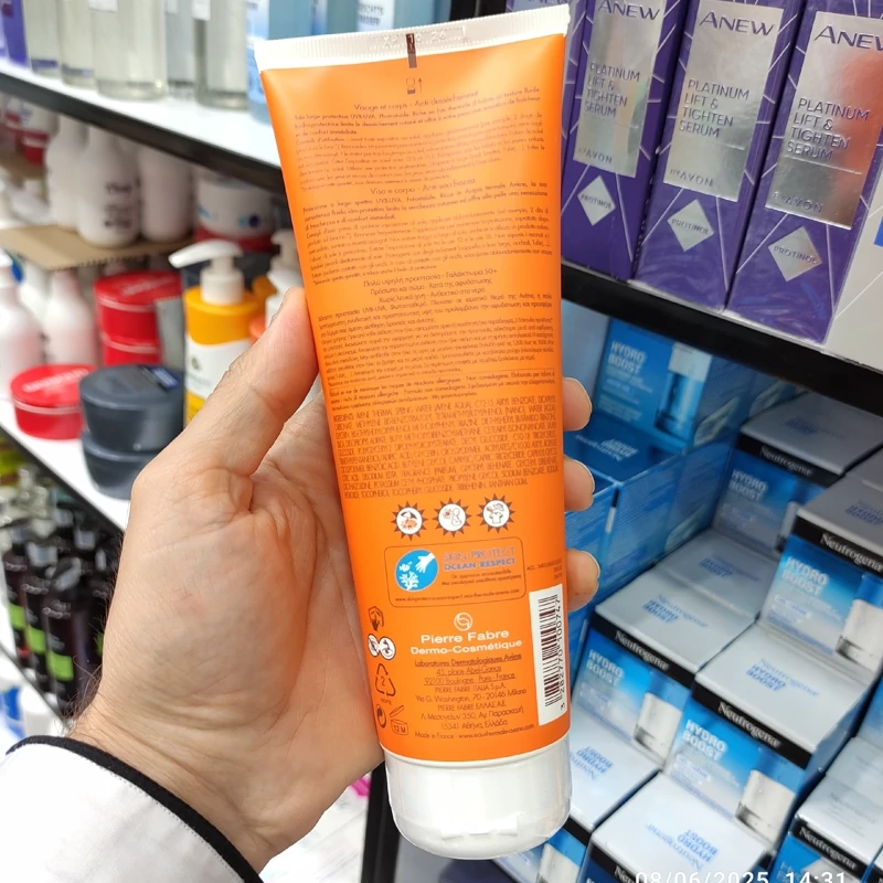 کرم ضدافتاب اون فرانسه SPF 50 حاوی آب حرارتی چشمه اون فرانسه غنی شده با شیر محافظت بسیار بسیار قوی از صورت مخصوص پوست های حساس و خیلی حساس خنک کننده صورت های داغ شده بر اثر حرارت افتاب بدون رد سفیدی روی صورت و پوست مقاوم در برابر تعریق کاملا ضد اب 250 میل بزرگ اورجینال فرانسه