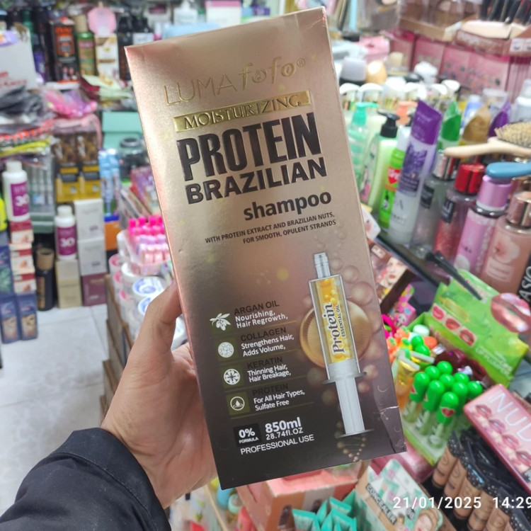 شامپو پروتئین لوما فوفو برزیلی امپول دار حاوی آرگان و کلاژن و کراتین