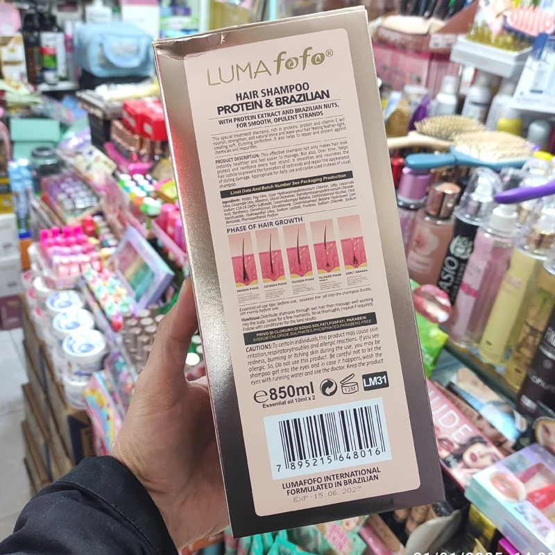 شامپو پروتئین لوما فوفو برزیلی امپول دار حاوی آرگان و کلاژن و کراتین