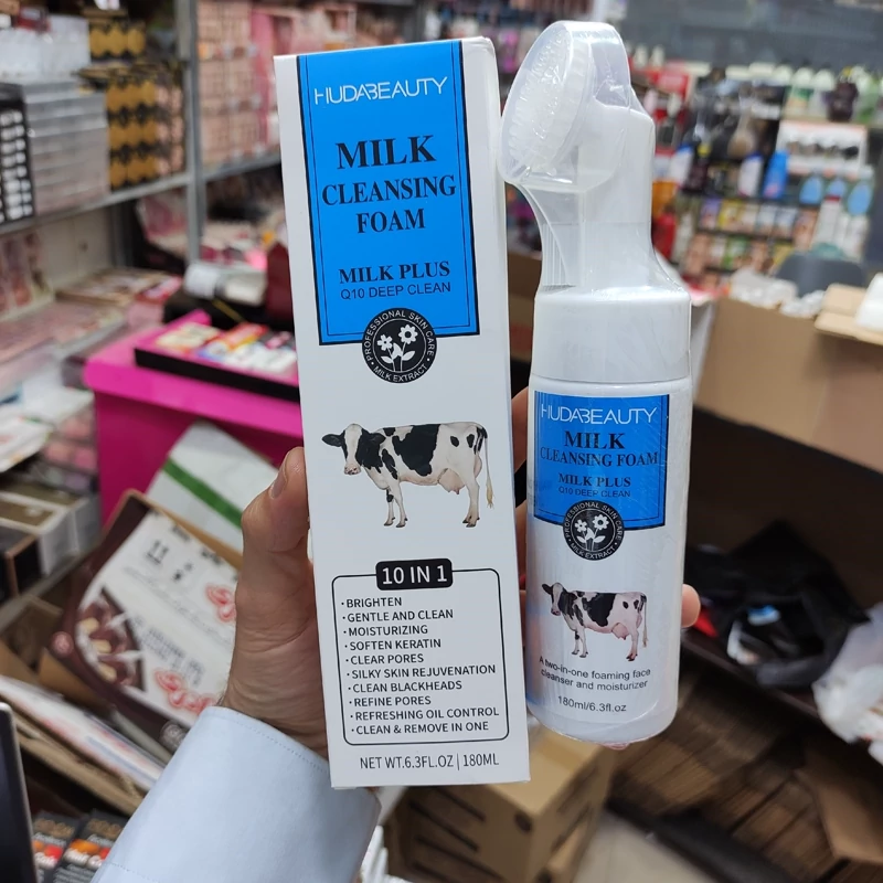 فوم شستشوی صورت هدابیوتی مدل شیر گاو حاوی ویتامین C حاوی آمینو اسید حاوی هیالورنیک اسید فاقد چربی فاقد پارابن و سیلیکون هیدراته و آبرسان حرفه ای صورت درخشان کننده صورت ضد لک و جوش و آکنه حاوی نرم کننده ابریشمی صورت بستن منافذ باز پاکسازی عمقی صورت حذف جوش های سرسیاه و عفونی صورت کنترل چربی صورت تست شده درماتولوژیک حجم 180 میل بزرگ